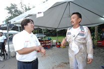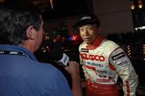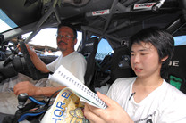 | 「マジ暑いっすねぇ~」「これが世界の厳しさだ、ユーヤ」スタッフ全員Tシャツでも汗だくなのに、ドライビングスーツのドラたちです(^^;;;;; |