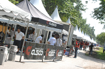 再び厳しい日差しが照りつけたデイ2。マシンのルーフは、今年も白で暑さ対策 |