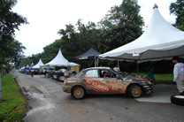 | SS5から突然の豪雨。マシンの汚れも、ウォッシングエリアでは落とし切れないほど |
