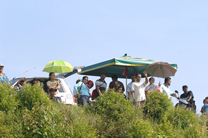 日よけ、スコールよけ、マレーシアのラリー観戦には傘が欠かせません |