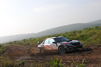 前日の雨で湿り気が残り、デイ2の路面はかなりトリッキーなコンディション。 |