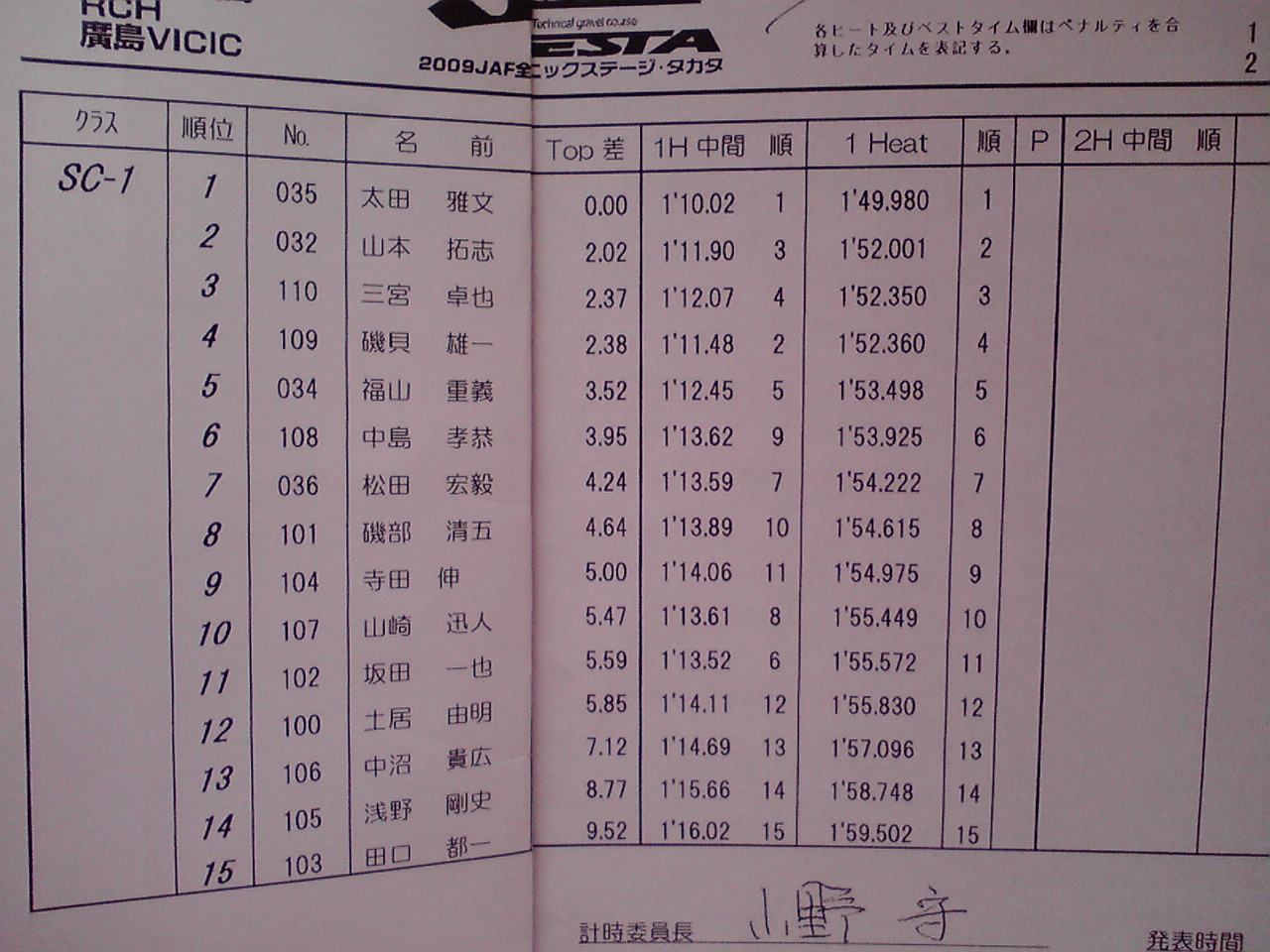 SC1とSC2クラスの暫定結果です