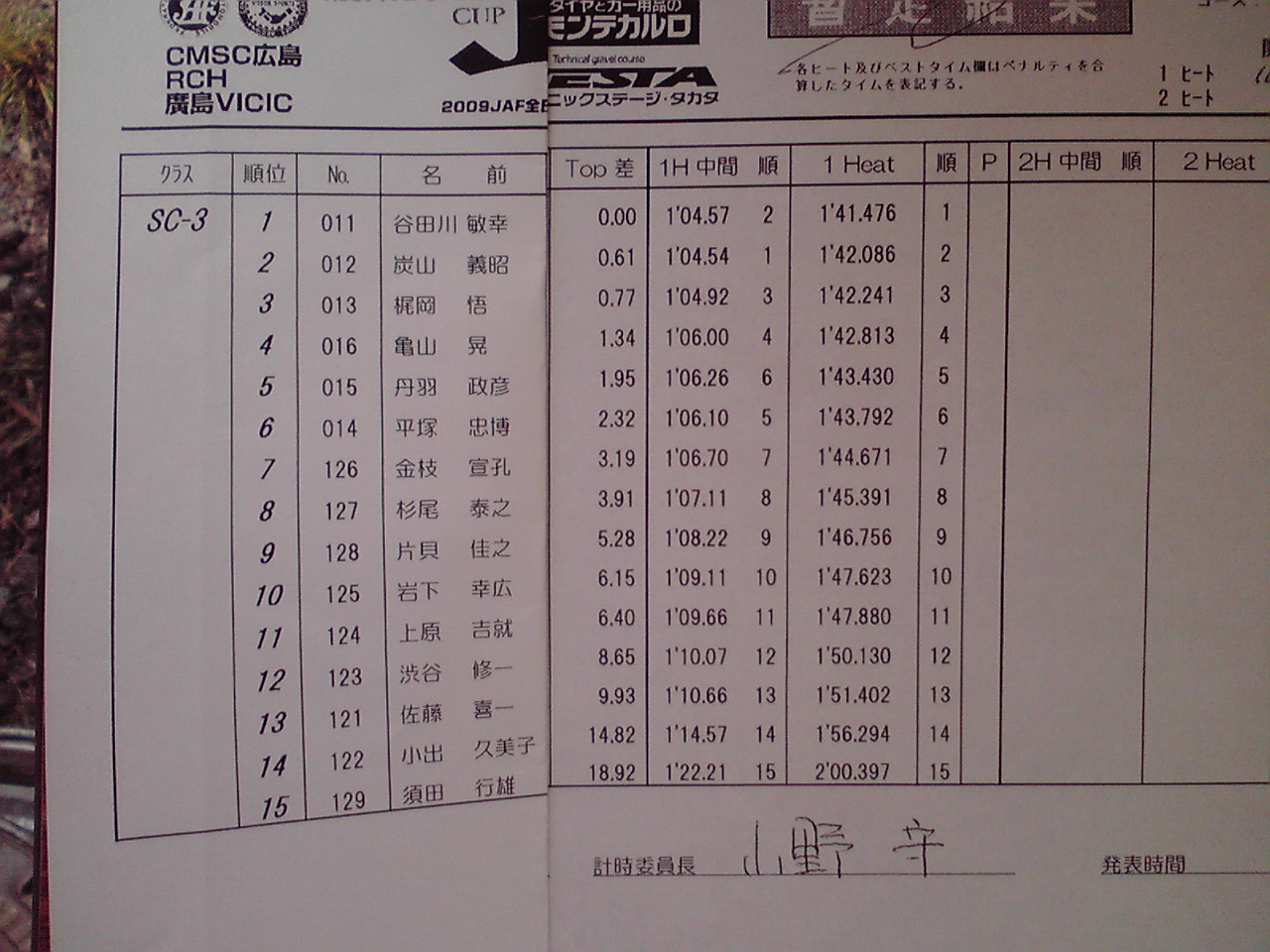 SC3クラスの暫定結果です