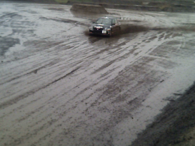 この路面です、湖のようです、この中タイムは2番手タイムを出した、荒井選手のクスコCMSCアドバンランサー、是非雨ですが応援してください