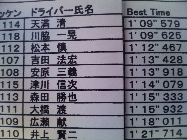TOP > モータースポーツ情報2007年 > 全日本ジムカーナ選手権 > 全日本ジムカーナ選手権レース速報 > SA3クラスの1ヒートのタイム