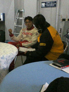 テスト終了後、タイヤテストを担当した山野選手は、DUNLOPのエンジニアの方に、タイヤのフィーリングを伝え、さらにAWDの良さを生かす、タイア造り開発をスタートさせています。