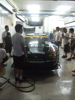 マレーシアも夜が更けてきました。クスコのピットでは、たたずむ人、座り込む人、飲み物を飲む人、裏でタバコを吸う人とそろそろ電池切れ状態です。皆、暑い中お疲れさまさまでした。