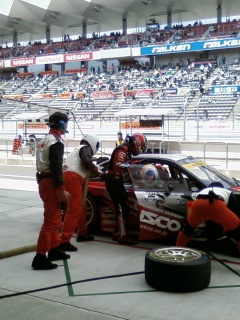 予選の最後に、ピット作業の練習を行います。