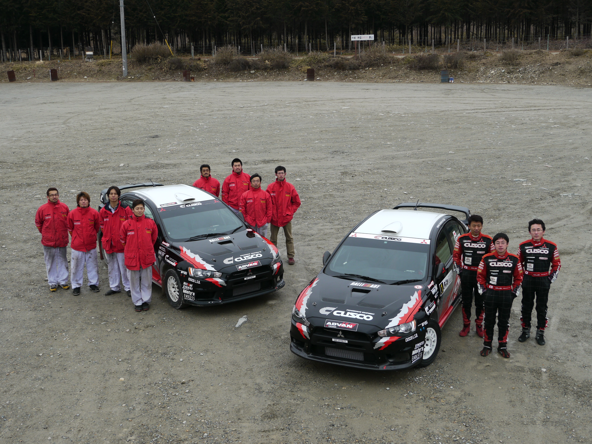 昨年同様、今年のマシンもランサーエボリューションX。リストリクターが33Φになりパワーアップ。足回りや駆動系のセッティングもバッチリ! 手前が炭山選手、奥側が柳澤選手のマシンです。全く同じように見えますが、実は見分けるポイントがあります。この写真では分からないですけど・・。それはまた後日。