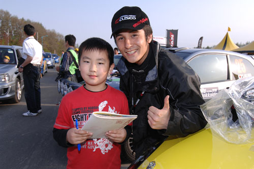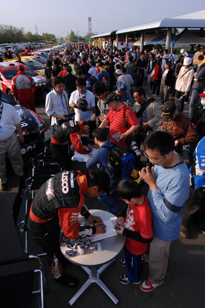 ラリーショーの柳沢選手、炭山選手のサインの様子
