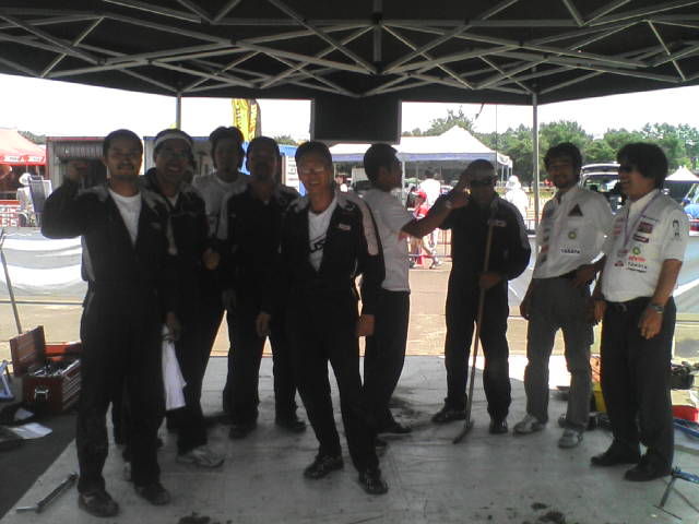 TC→サービス地点→TCの移動を含み20分59秒以内で行う作業でした。実際の作業時間は19分30秒程です。おまけに、車両の各部は熱を持った状態です。緊張の戦いに、メカニックの全員が、冷静なプロフェショナルとして、戦い抜き見事に勝ちました。