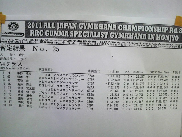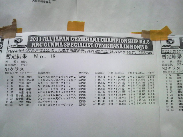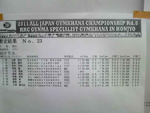 > 全日本ジムカーナ本庄 決勝2本目結果 Nクラス