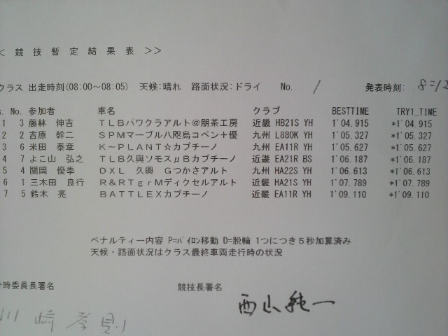 > JAFカップジムカーナB1クラス第1ヒート暫定リザルト