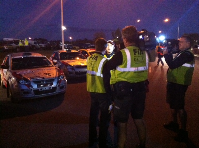 今回は、プロトン サトリアNEOの2号車へマレーシアのカラム選手が乗ります。スタートまえに取材中の番場選手です。