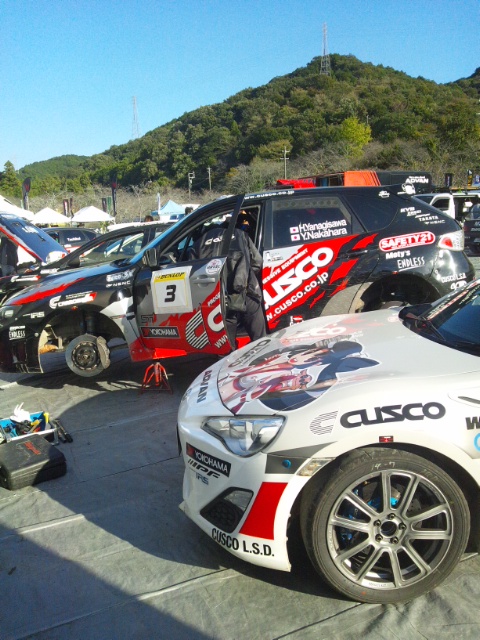 最終戦の新城ラリーが始まりました。今日はレッキのみ。柳澤選手、三好選手、明治選手ともに無事レッキを終了。これから車検です。風が強く上着がないと寒いくらいです。