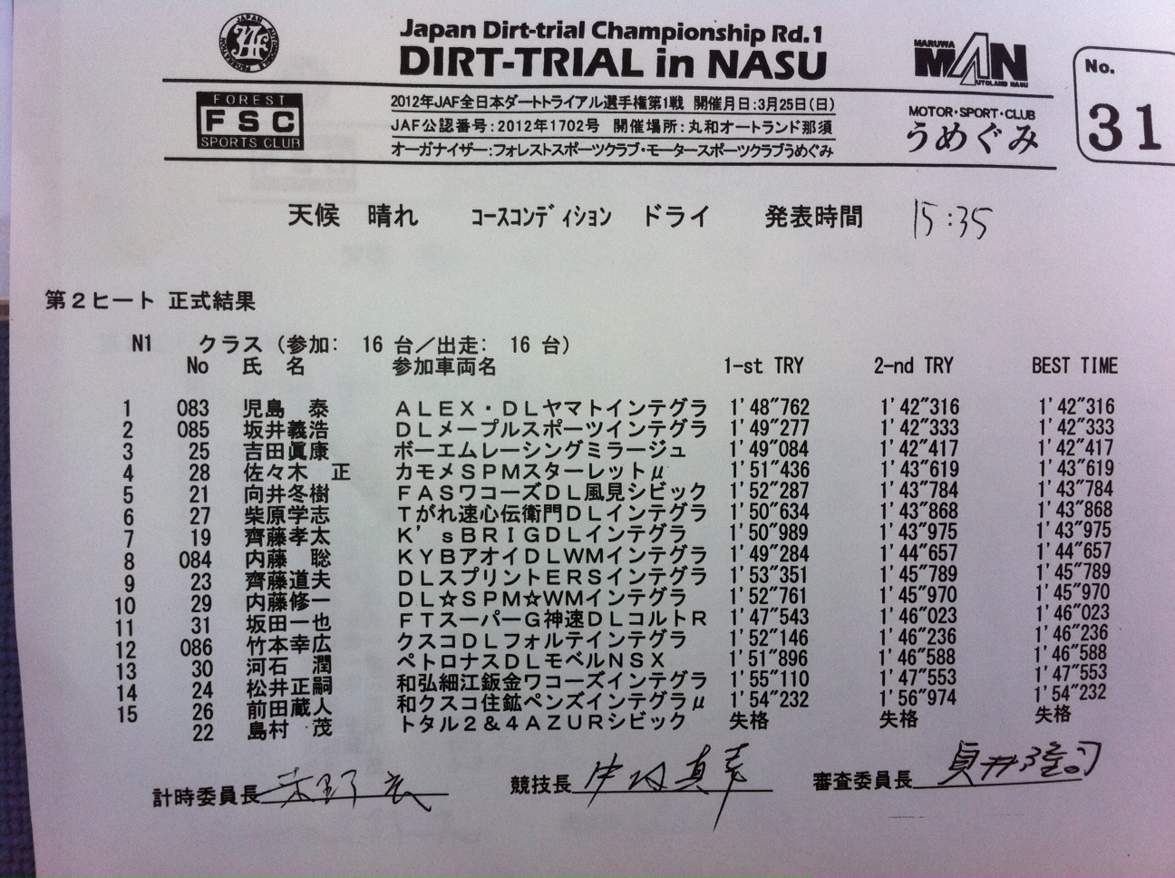 > 全日本ダートラ丸和 N1クラス正式結果