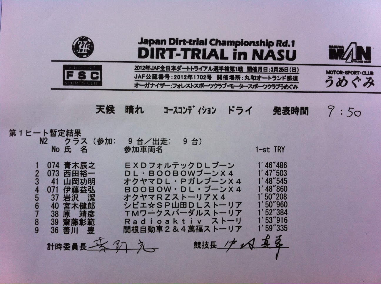 > 全日本ダートラ丸和 N2クラス第1ヒート暫定結果