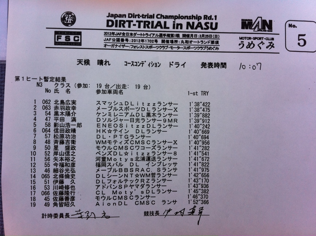 > 全日本ダートラ丸和 N3クラス第1ヒート暫定結果
