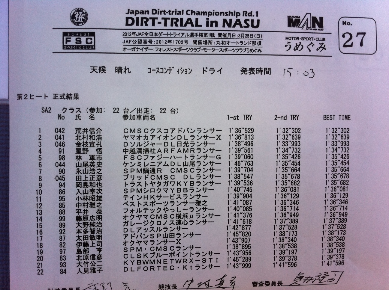 > 全日本ダートラ丸和 SA2クラス正式結果