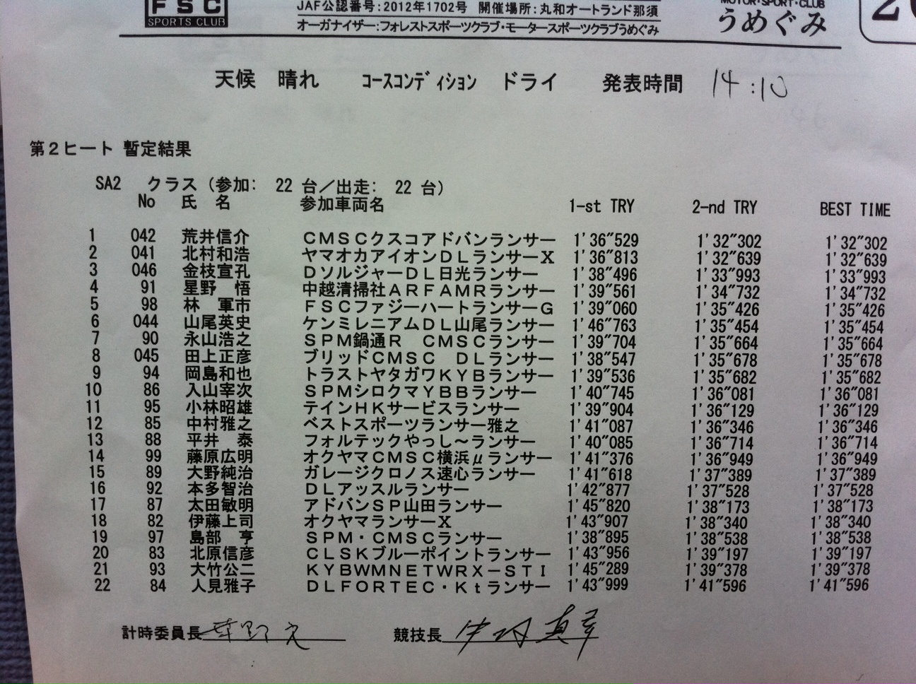 全日本ダートラ丸和 SA2クラス第2ヒート暫定結果