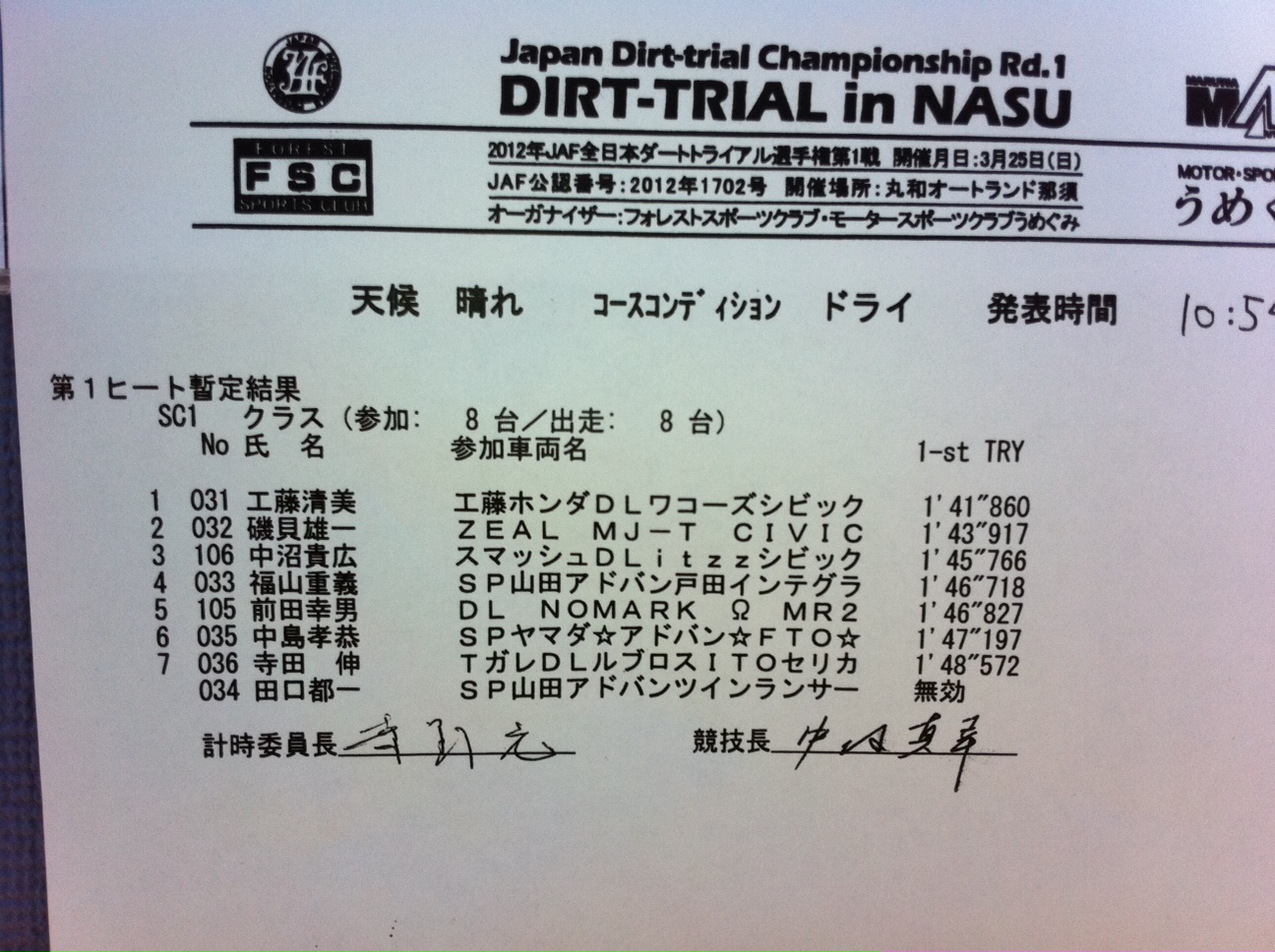 > 全日本ダートラ丸和 SC1クラス第1ヒート暫定結果