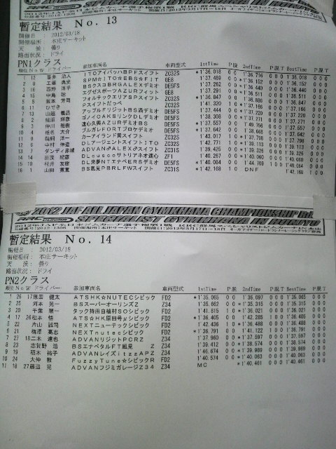 > 全日本ジムカーナ本庄PN1,2クラス暫定