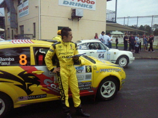 スタート前にノートを見直す番場選手の後ろを通過するのはポルシェ911RSR。