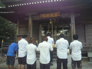 サービススタッフ一同で愛国神社に必勝祈願です。