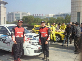 午後のスタートを控えてラリーショー開催中です。去年とは大違いの快晴ですが、ここまで晴れるとダストが心配です。