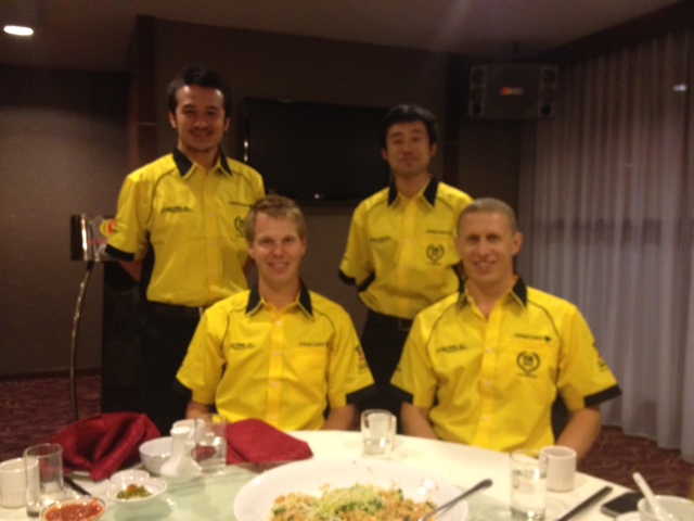 PROTONワークスチームのディナー、番場選手、保井選手、アリスター マクレー選手、PGアンダーソン選手と楽しい時間を過ごしました。
