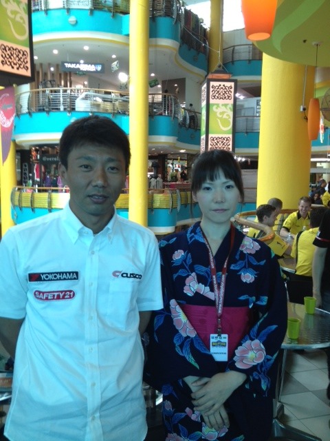 プレスカンファレンス後のウエルカムカクテルで、マレーシア国内戦エントリーの伊藤選手のコドライバーの中川選手と記念撮影!注目の的でした。
