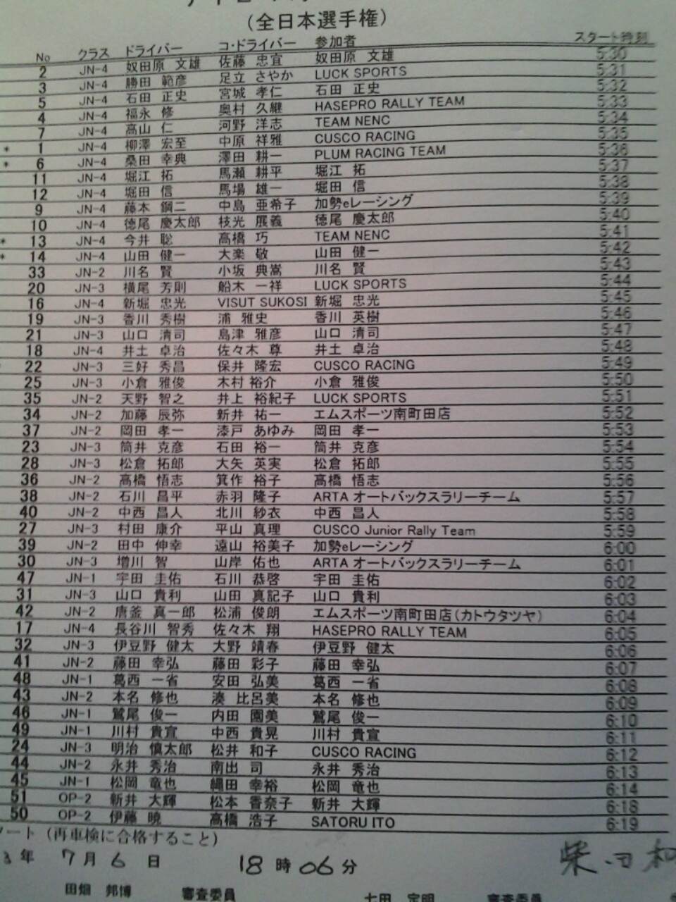 全日本ラリー第4戦ラリー洞爺デイ2スタートリスト