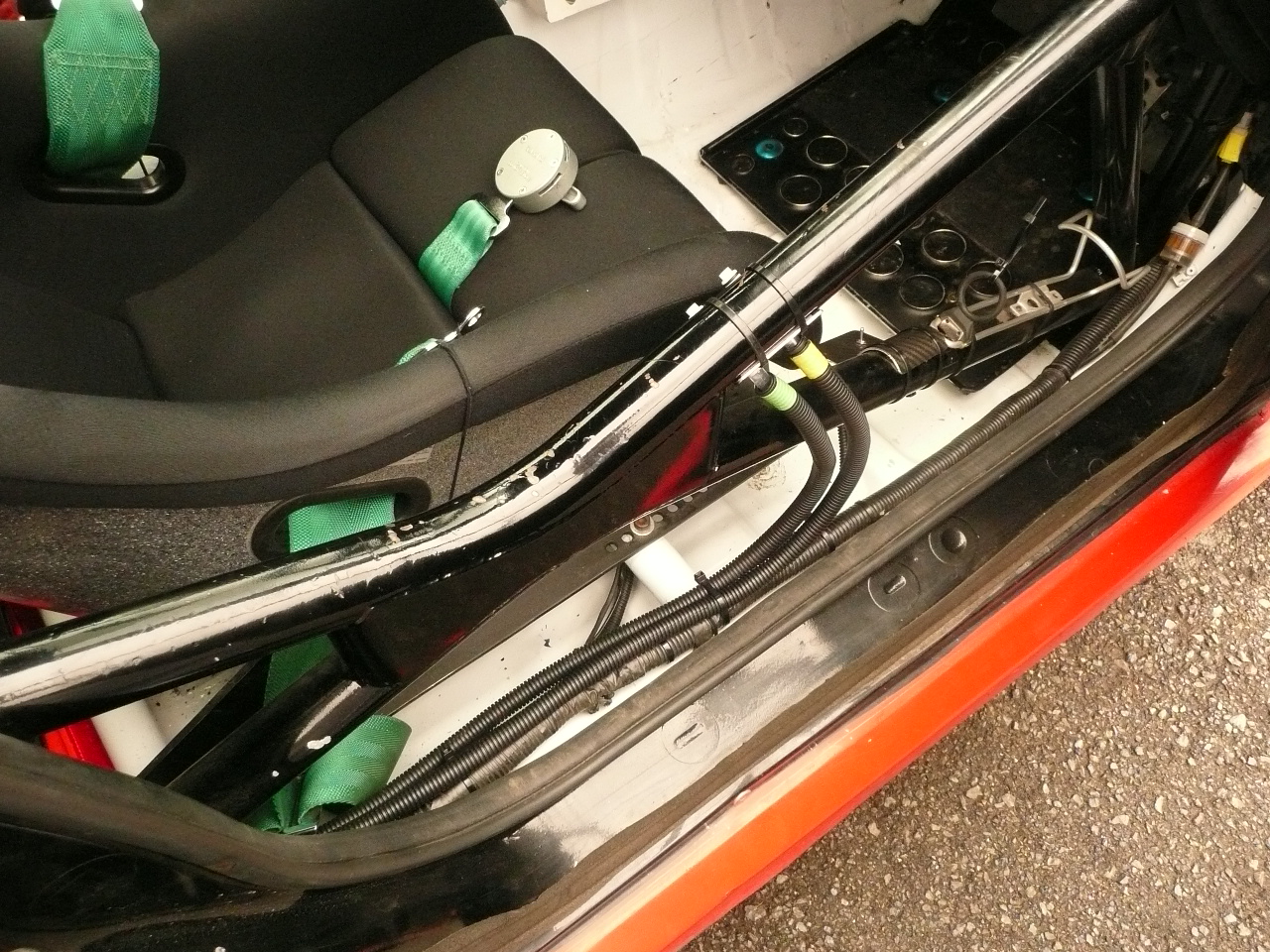 クールスーツ接続コネクターをロールケージに取り付けています↓