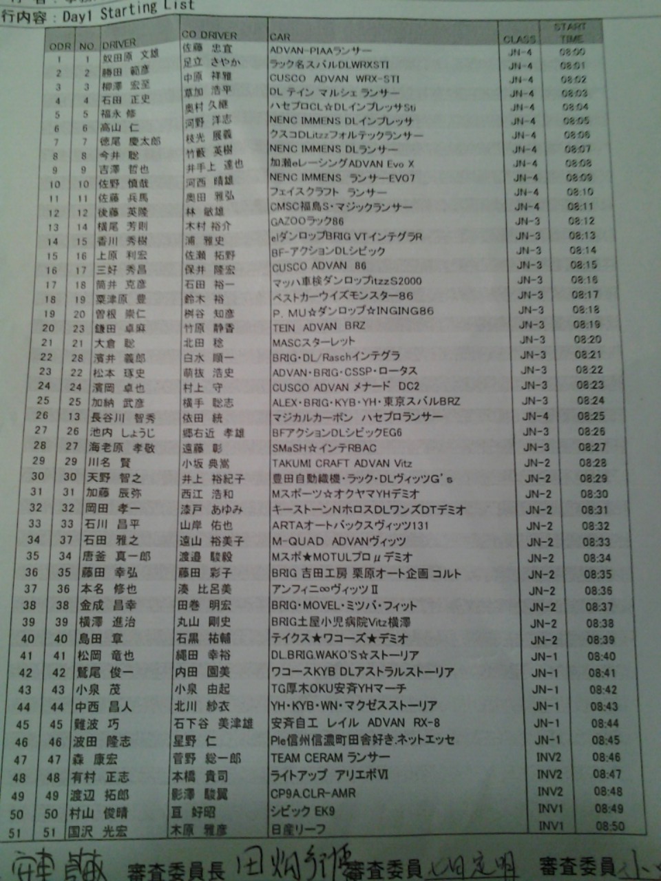 全日本ラリー モントレー2013 in 群馬 デイ1スタートリスト