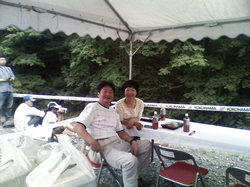 キャロッセの創始者 加勢前社長の旧知の友人である、現在APRCのメカニックをしている東海林さんのお父様と会長が炭山選手の走りを観にきました。