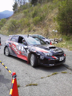 全日本ラリー久万高原、柳沢選手、ギャラリーステージ前、到着。