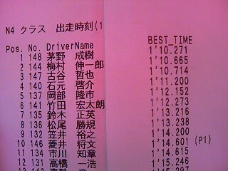 N4クラスの結果です。 天満、菱井両選手共に仲良くパイロンタッチです。