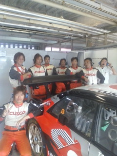 スタート進行がまもなく開始になります。クスコのレーシングカーを、速くする為に、心を一つにして情熱を注いでいるスタッフです。(仕事の関係で全員ではありません)