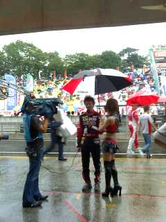 青木選手がカメラトーク♪お隣にいるのはクスコサーキットレディの上原やよいちゃん。