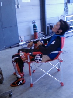 300クラス占有。青木選手を見守る山野選手。このあと500クラスの占有後、混走です。 青木選手がセッティング確認のため乗り込みます。
