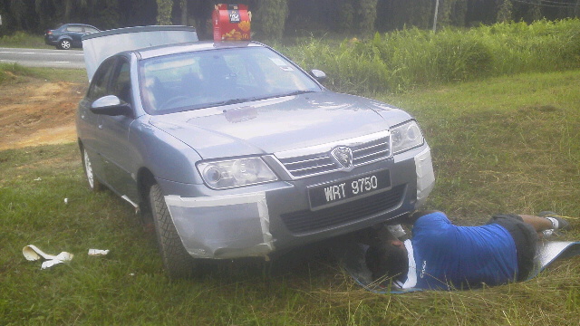 いきなりマレーシアの道の洗礼を受けたのは牟田選手じゃなく、メカニックの方!?