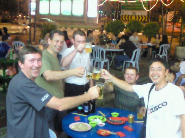 ラリー後の夕食。チーム、タイヤメーカー、メディアの皆さんと一緒に!いつもビデオを撮ってもらっている、APRC TVクルー共に撮影!