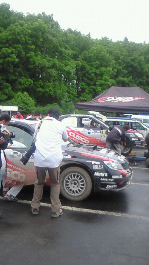 シェイクダウンに開始になりました。路面はウエット。明日も天気予報は雨なので各チームセッティング中!