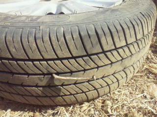レッキを終えてふと、タイヤに目をやると巨大な釘がタイヤに突き刺さっていました!