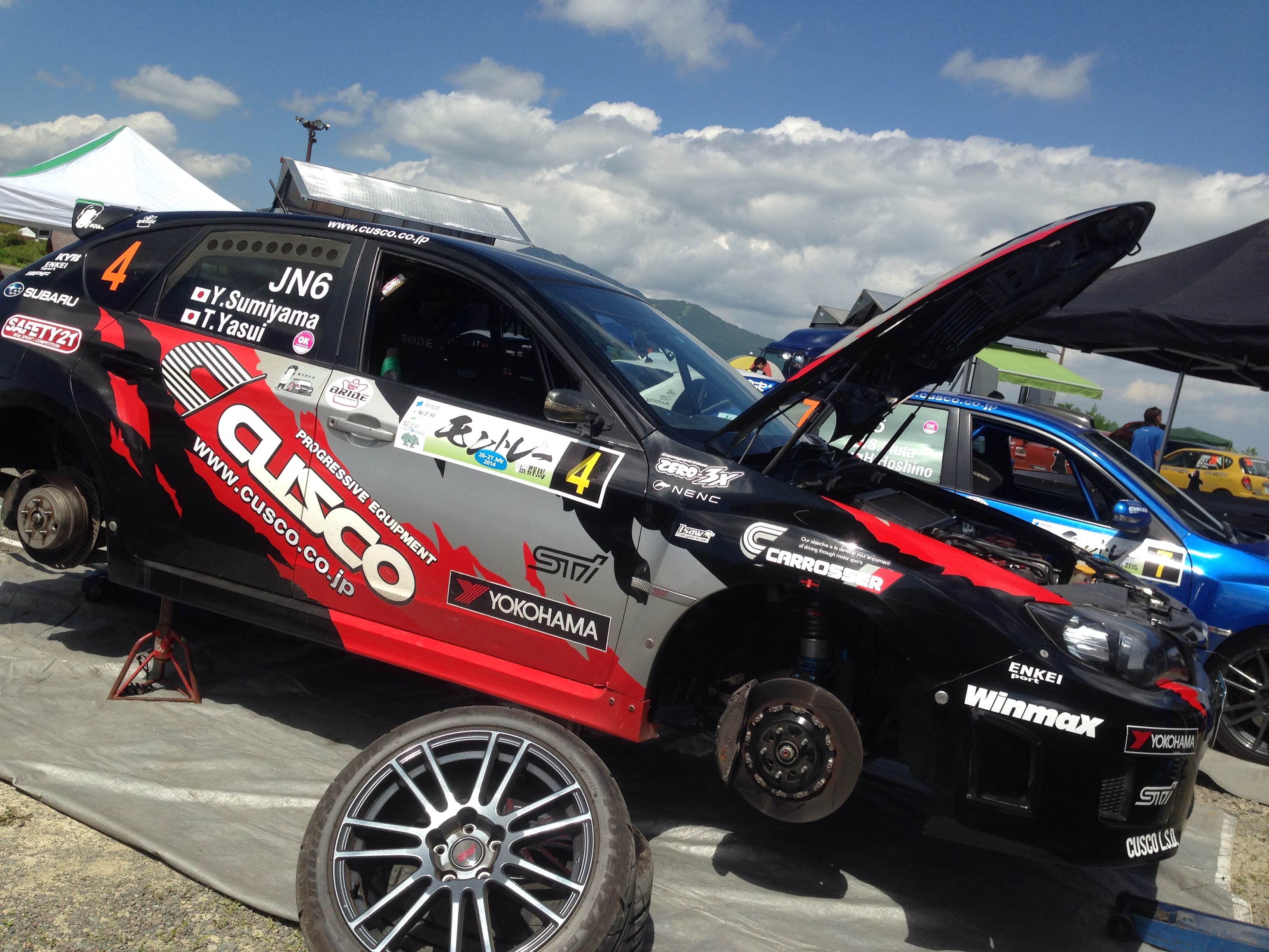 サービスパークのあるパルコール嬬恋は標高1500メートル。それでも気温はぐんぐん上昇中。ステージは高速ターマックをメインに、浅間サーキットのグラベルステージもあり、バラエティに富んでいます。明日8時30分、一号車スタートです。