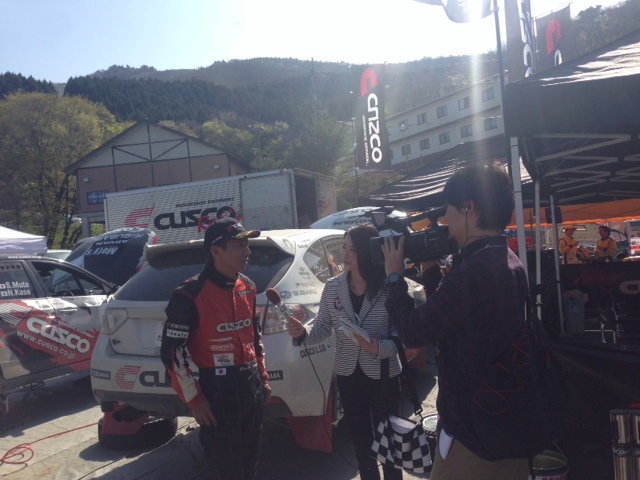 久万高原ラリー 総合2位でDAY1をクリアーした、炭山選手をJスポーツさんがインタビュー中です!