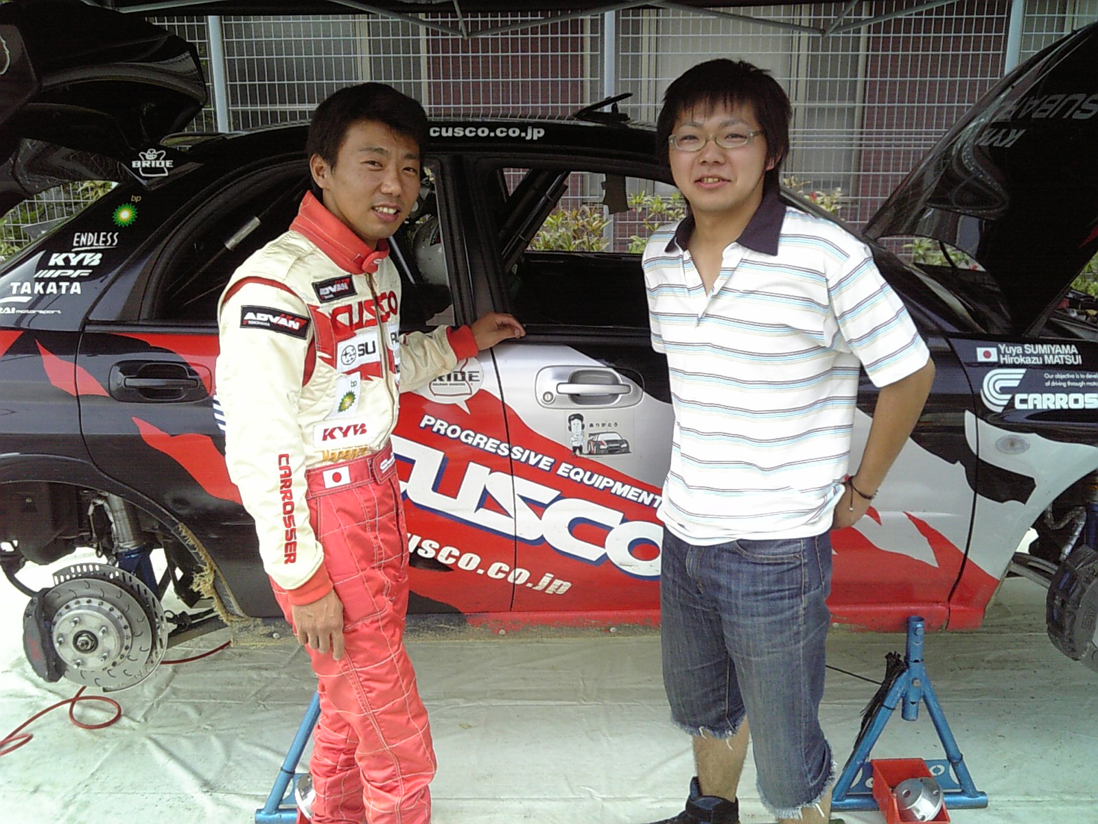 サービスにて若手全日本ドライバーの小舘選手とクスコ・ワークスドライバー炭山選手がコースについて情報交換する場面も(?_?)