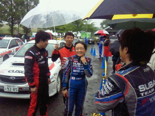鹿角平ラリーパーク リグループです。大嶋選手や新井選手と攻略方を話す炭山選手。竹内選手も順調に進んでいます。