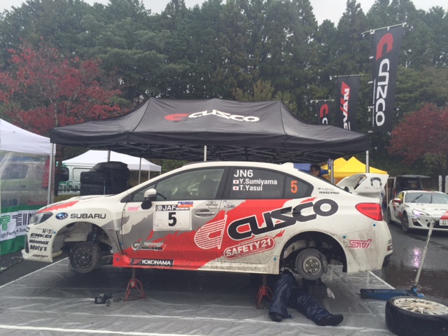 新城ラリー サービスAに戻って来ました。炭山選手のWRX STIは、電装系のトラブルを抱え戻って来て、修復して午後のセクションに向かいます。iPhoneから送信
