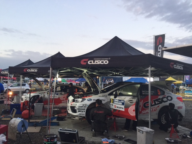 スタート時点で、新型WRXSTIの柳沢選手が、総合3位、GRBの炭山選手が、総合4位からの